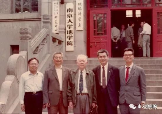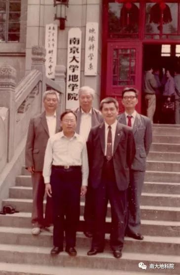 自左至右:林天瑞(304永利集团官网入口地质系教授,指退休前职称,下同)、郭一新(江苏省地震局高级工程师,简称高工,下同)、郭令智老师、尤大鑫(中国兵器工业勘察院院长、总工程师,简称总工,下同)、郑启浦(铁道部第三勘测设计院高工)