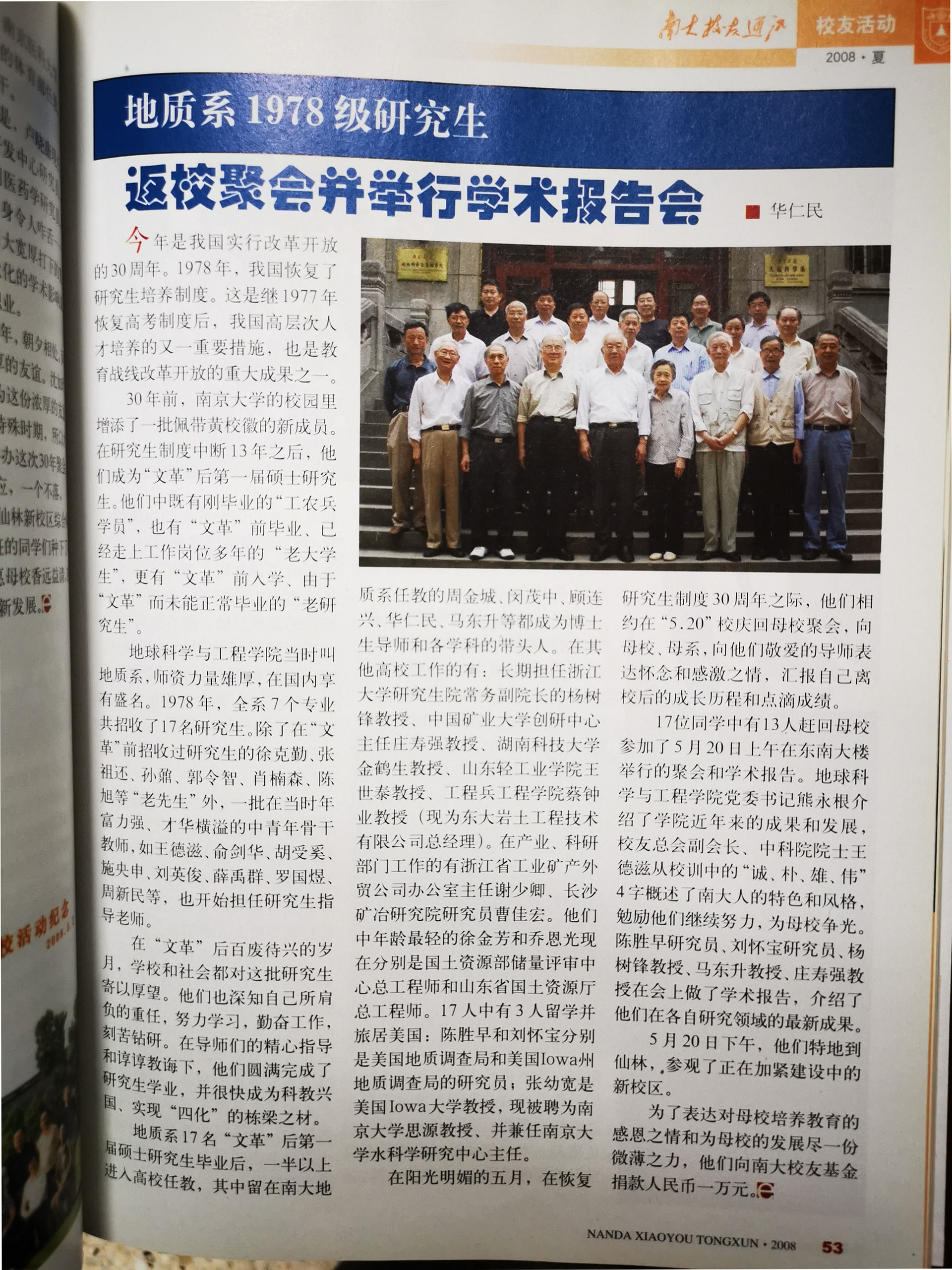地质系1978级研究生重返聚会并举行学术报告