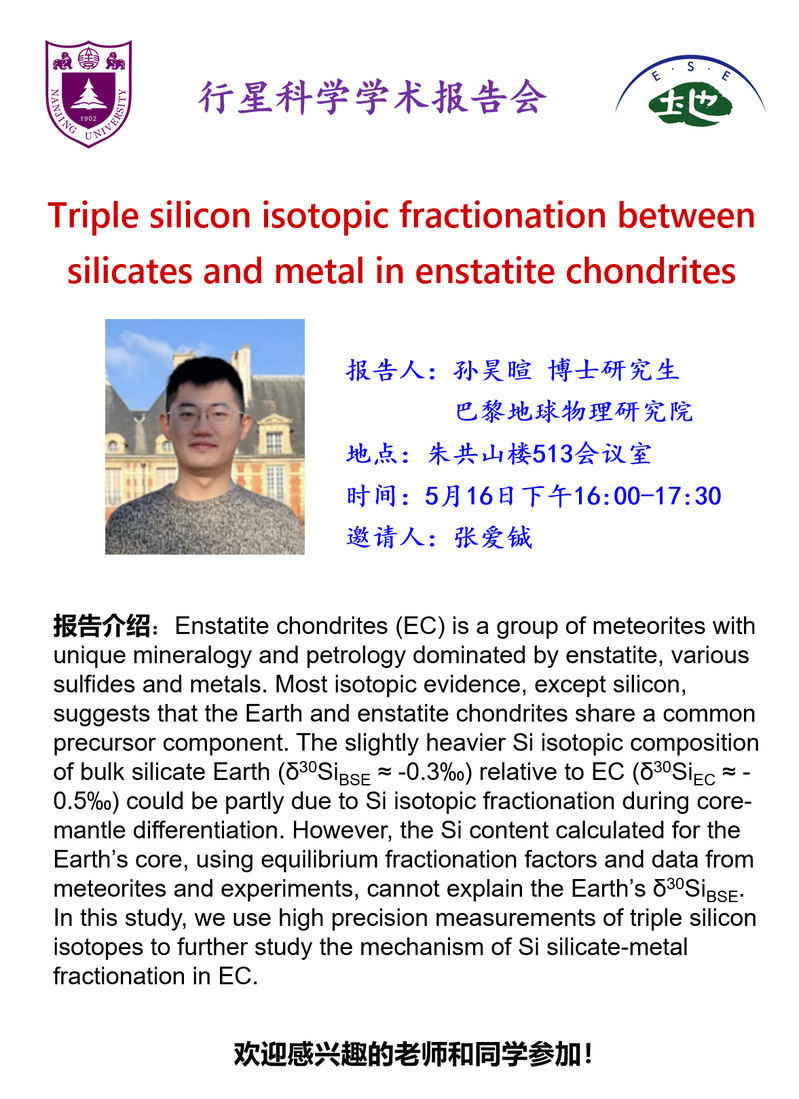 Lecture:Triple silicon isotopic fractionation betweensilicates and metal in enstatite chondrites