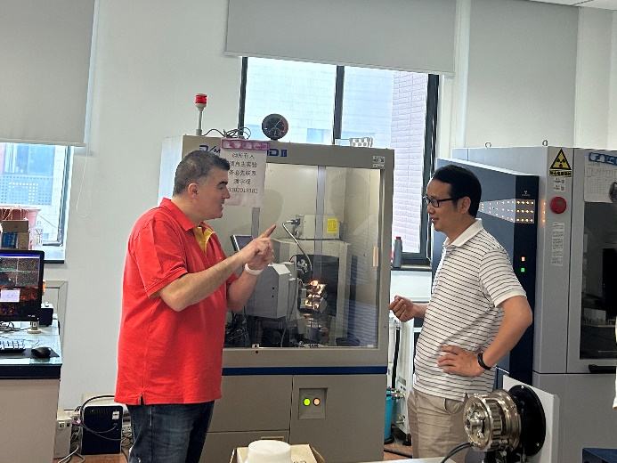 Prof. Nestola exchanged views about X-ray diffraction technology with Prof. Li Weiqiang