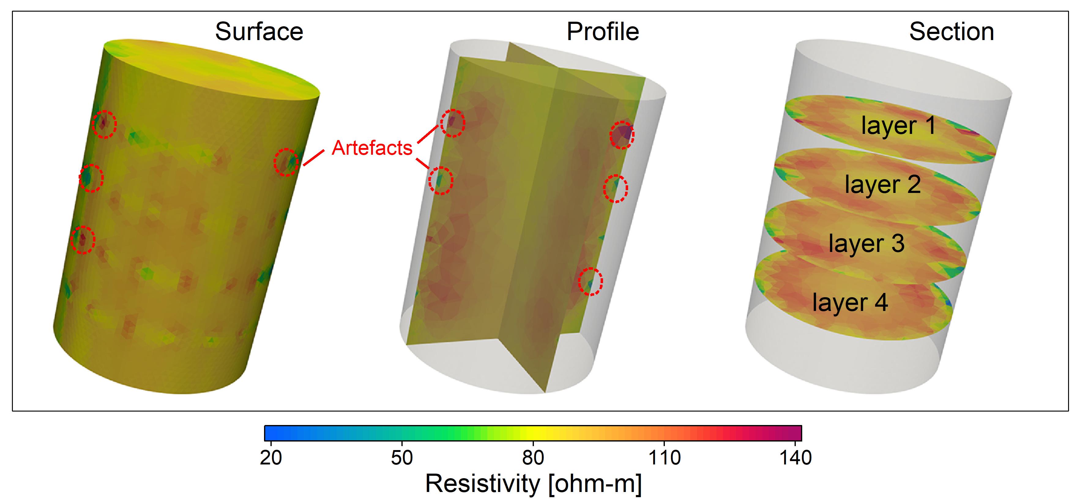 The study serves to explore the potential of ERT as a monitoring method for the MICP treatment process. Of particular interest are its possibilities to contribute to the monitoring of spatial heterogeneity of cementation because of the limitations of traditional techniques in this respect.