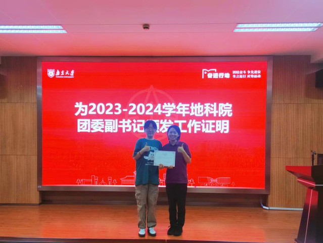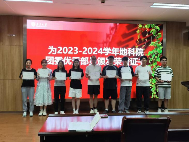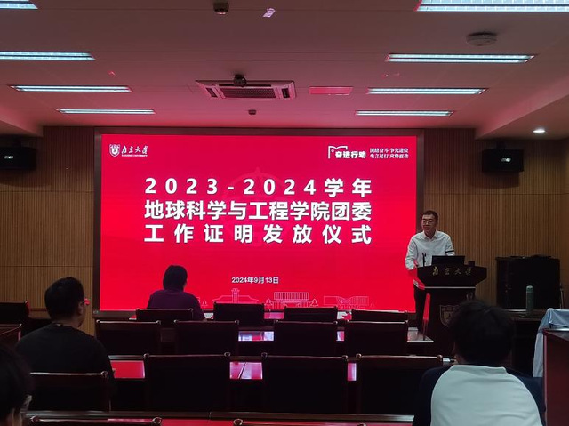 2024年9月13日,共青团304永利集团官网入口委员会工作证明发放仪式在朱共山楼125会议室顺利举行。本次大会由304永利集团官网入口团委副书记2022级地质学拔尖本科生陈方信主持,列席嘉宾有共青团304永利集团官网入口委员会书记陈昕,2023届学院团委副书记赵雨潇、阙荣铭,2024届团委副书记陈凤婷、陈方信,2023届团委各部门部长团成员、各部门部员,新一任团委各部门部长团成员及新生代表。