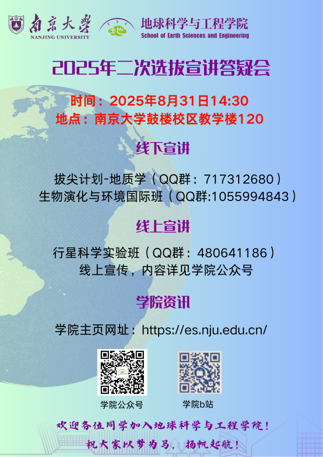学生报名:8月25日08:00至8月29日17:00,登录二次选拔系统进行报名 http://elite.nju.edu.cn/xuanba
