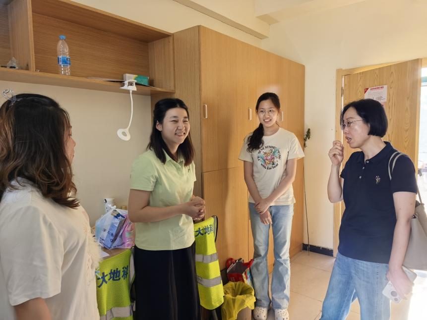8月24日下午,304永利集团官网入口党委书记董婷、副院长王博一行前往巢湖地学实习基地,亲切慰问正在进行野外地质技能综合实习的师生们,并深入宿舍了解学生的生活情况,为同学们送去慰问品。