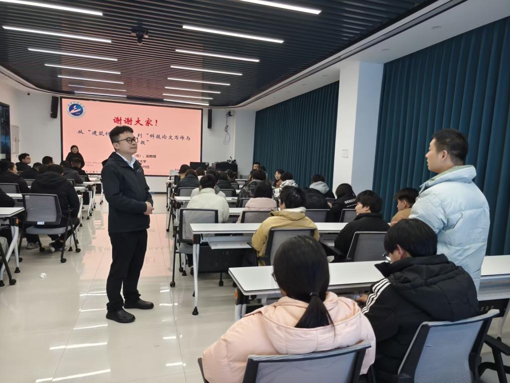 12月9日,武汉工程大学土木学院徐雄副教授应邀来校,以《科技论文撰写与项目申报技巧》为题开展经验交流分享。建筑工程学院全体教师及部分学生代表70余人参加此次讲座。