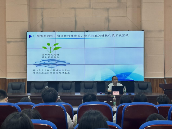 罗龙海从世界科技竞争日趋激烈、我国科技机遇挑战共存以及加快科技自立自强步伐三个方面进行了讲解,授课中引用了大量新词热词、数据和科技产品,让同学们感受到了科技立则民族立,科技强则国家强的使命感。他提出,青年一代要有科研精神和创新意识,要大力弘扬科学家精神,勇攀科技高峰。