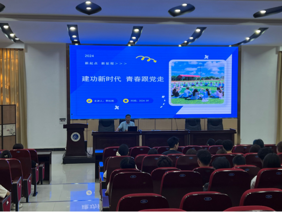 党课的主题为“建功新时代,青春跟党走”,他从“什么是大学、新时代青年的新使命、青年不忘初心跟党走、青年建功新时代、给大一新生的几个建议”五个方面进行了讲解,他告诫全体新生大学不是堕落的开始,而是梦想的新起点,独立意味着更大的社会责任,自由意味着更多的包容,解放意味着更多的自我管理,长大意味着更多的付出。他指出青年是推动历史进步的重要主体、是民族复兴和国家发展的有生力量、是我们党的事业的继承者和开拓者,青年要坚定理想信念,不忘初心跟党走。同时也指明新时代新青年应当建功新时代,把报国之志转化为实际行动,努力成为担当民族复兴大任的时代新人。最后,他寄语全体新生要有直面现实的勇气,要有超越苦难的精神,要有披荆斩棘的魄力,要有创造未来的胆略,永葆激情和梦想,铭记感恩和责任。