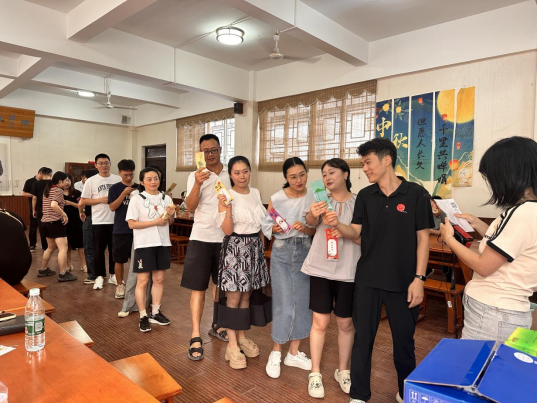 活动的压轴大戏是传统手工艺——制作漆扇,老师们纷纷动手体验制作漆扇,整个过程很用心,漆扇不仅美观实用,更是对中华传统工艺的一次深刻体验与传承。