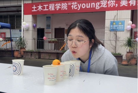 活动中,同学们尽情投入到到井字棋、吹乒乓球、纸杯叠叠乐、你画我猜等游戏中,活动现场助威声此起彼伏,气氛热烈火爆,欢声笑语不时传来。同学们都沉浸在欢乐与祝福声中,爽朗的笑声中散发出春天的暖意。
