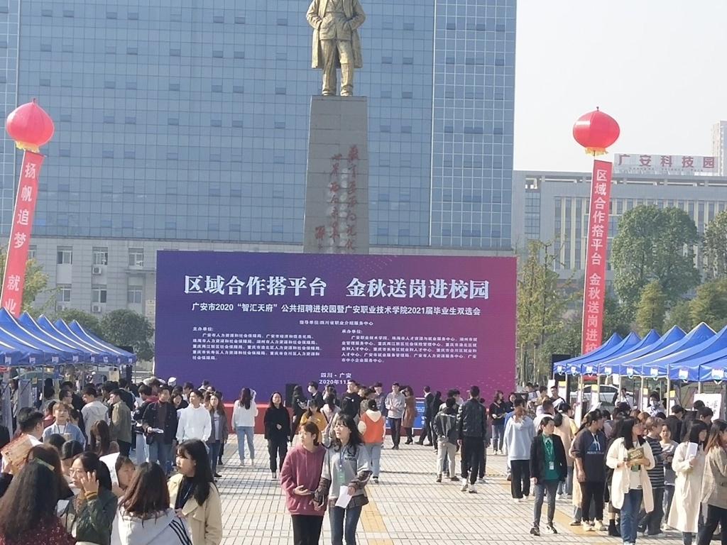11月10日,广安市2020“智汇天府”公共招聘进校园暨YABO鸭脖官网2021届毕业生双选会在鸭脖官网小平广场隆重举行。
