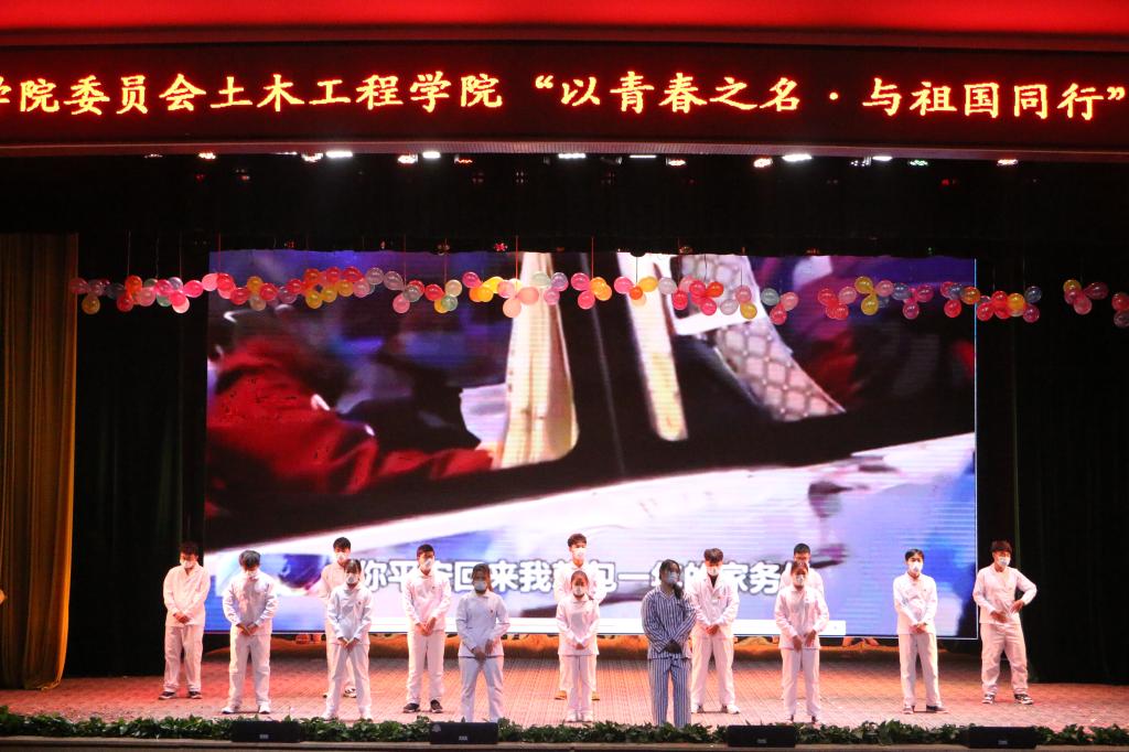 晚会在火热的开场舞中拉开序幕,然后全体师生共唱共青团团歌。接下来的节目异彩纷呈,给大家带来了视觉的冲击与享受。歌曲《不要怕》、舞蹈《你的答案》致敬了疫情期间的抗疫英雄,同时让大家感受到了祖国的强大。《七月火把节》、《走秀》中欢乐热情的曲调,点燃了现场观众的热情,展示了多姿多彩的民族文化;由同学们自编自导的小品《战时青年》催人泪下,表达了对革命先烈的缅怀和敬仰之情;《舞龙》中激昂的歌声响彻全场,表演者所展示出来的中国龙精神将现场的气氛推向高潮,同时也为本场晚会画上了圆满的句号。