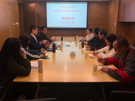 2020年2月1日,YABO鸭脖官网会同校企合作处赴成都万维时空科技有限公司考察,并就进一步扩展学校建筑工程检测虚拟仿真实训基地功能进行了座谈。
