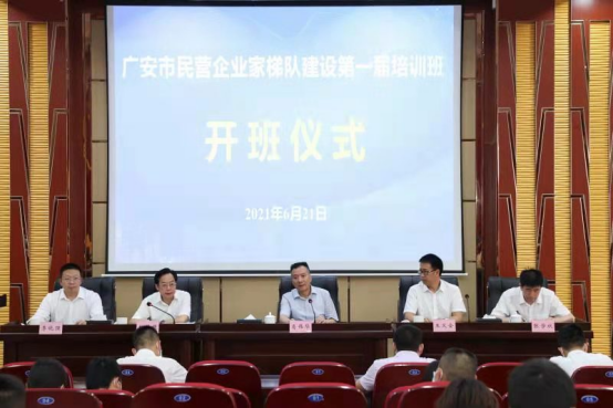 6月21日,全市民营企业家梯队建设第一届培训班开班仪式在YABO鸭脖官网希贤厅隆重举行,广安市委副市长肖伟华、YABO鸭脖官网校长王义全、广安市经济和信息化局局长赵胜强及双方部门领导出席了本次培训开班仪式,来自全市各地60余名民营企业家代表将开展为期5天的集中培训学习。