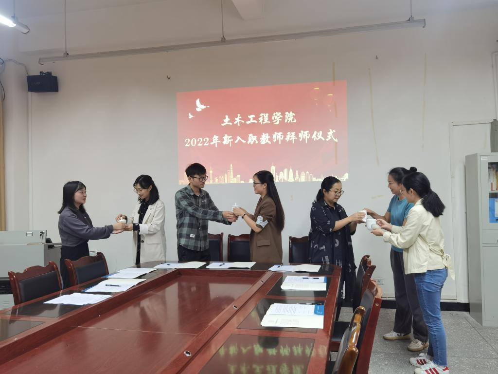 2022年9月27日下午,我院在致用楼126举行了2022年新入职教师拜师仪式拜师仪式。在学院党总支书记赵渊和院长的见证下,新入职教师敬上了一杯满怀尊敬的茶。拜师学艺,是我国一项悠久的传统民俗礼仪,通过师徒相传技能,使得中华文化代代相传。